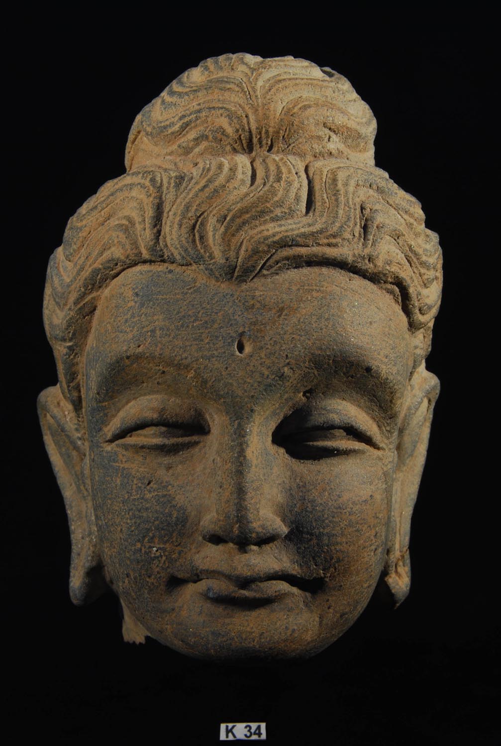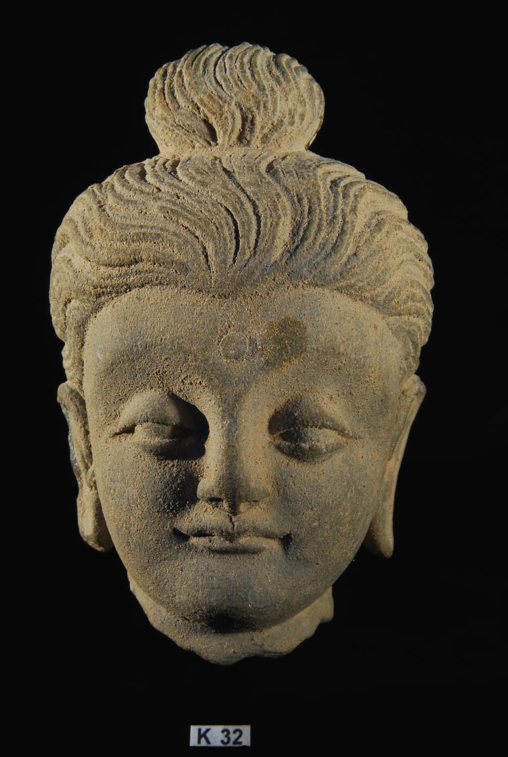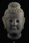 Description: Carved Stone Head of a Bodhisattva, c. 3rd Century AD.