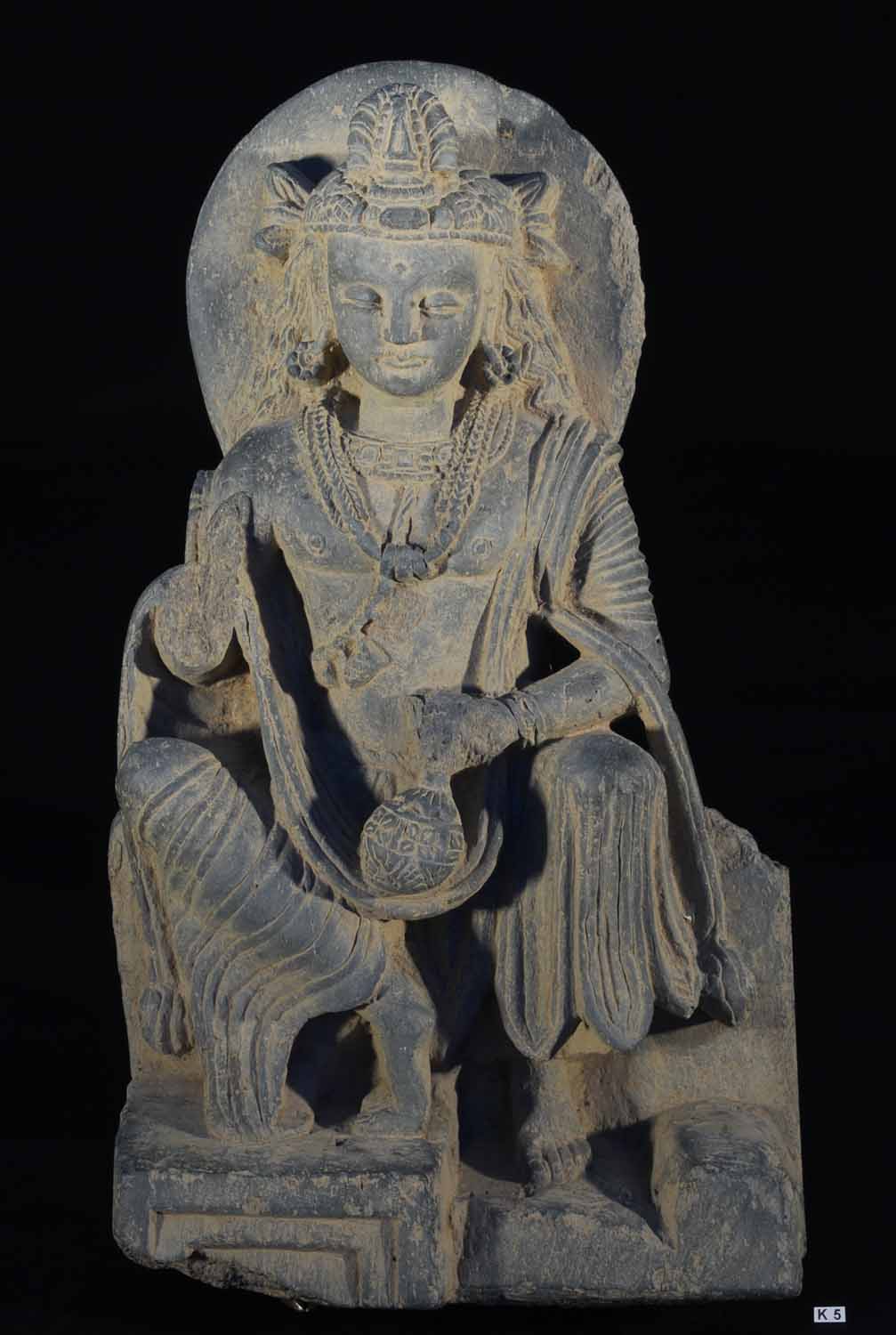 Description: Carved Stone Depiction of a Bodhisattva.