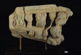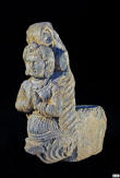 This beautifully carved piece probably once represented an architectural corbel or lintel and depicts a winged spirit or devi emerging from an acanthus.