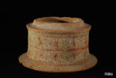 Fine buff clay, pale red cup with banded and chevron black-painted decoration.