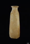 Description: Ancient Eastern Greek Alabastron. 4th-3rd Century BC. Tall and elegant alabastron vessel probably used for the storing of aromatic oils or perfume, with incised three-line decoration to the shoulder and base, the top with a broad rounded lip and the base flat. Calcite. Magnae Graecia.