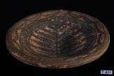 Description: Indus Valley Red-ware Pottery Vessel of Zoomorphic Turtle Form with chocolate brown decoration, the sides possessing four lug loops to facilitate suspension or carrying.