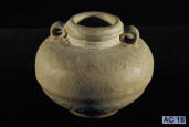 Description: Sukhothai Miniature Pot 14th -15th Century AD. With moulded decoration and pierced lug handles. Glazed terracotta. Thailand.