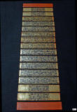 Description: Buddhist Sutra Boards. Each board double faced and of enamel lacquered silk fibre construction with gilt and red lacquer coating. The text in black relief enamel has been written on a background of red and metallic silver and probably relates to the ordination rites of a buddhist monk. Impressive and in superb original condition, each leaf 520 x 120 mm, early 19th Century.