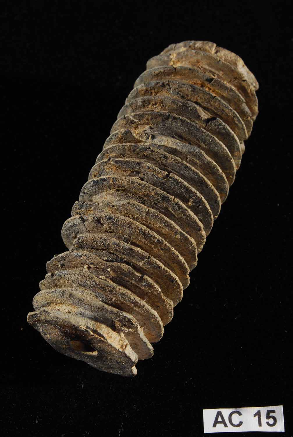 Clay rollers such as this have an as yet unknown function but are often found as grave goods. Such rollers may have been used to decorate print fabric or alternatively, served as some form of tattoo or marking implement for the skin.