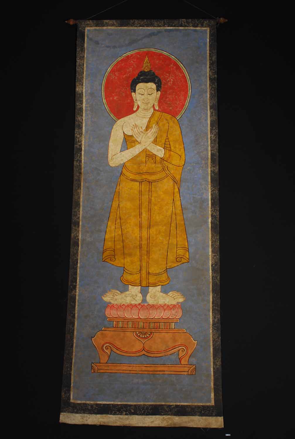 Description: Buddhist Thangka Painting of the Standing Buddha. Tibet or Nepal.