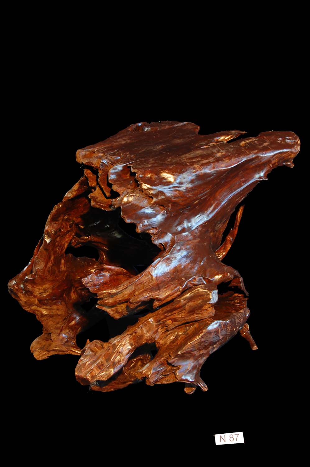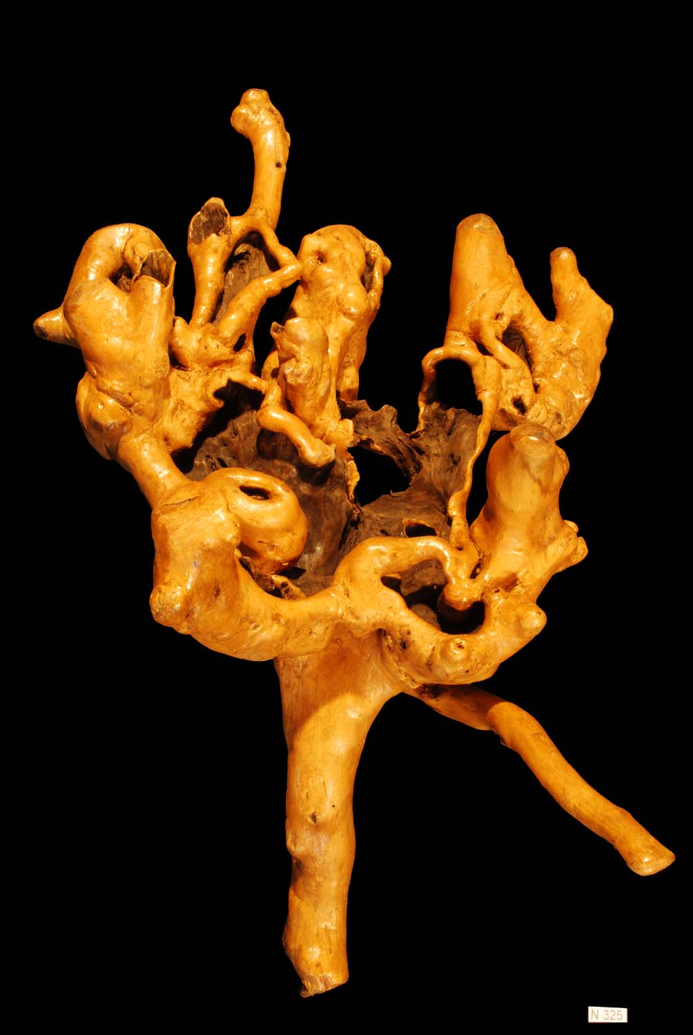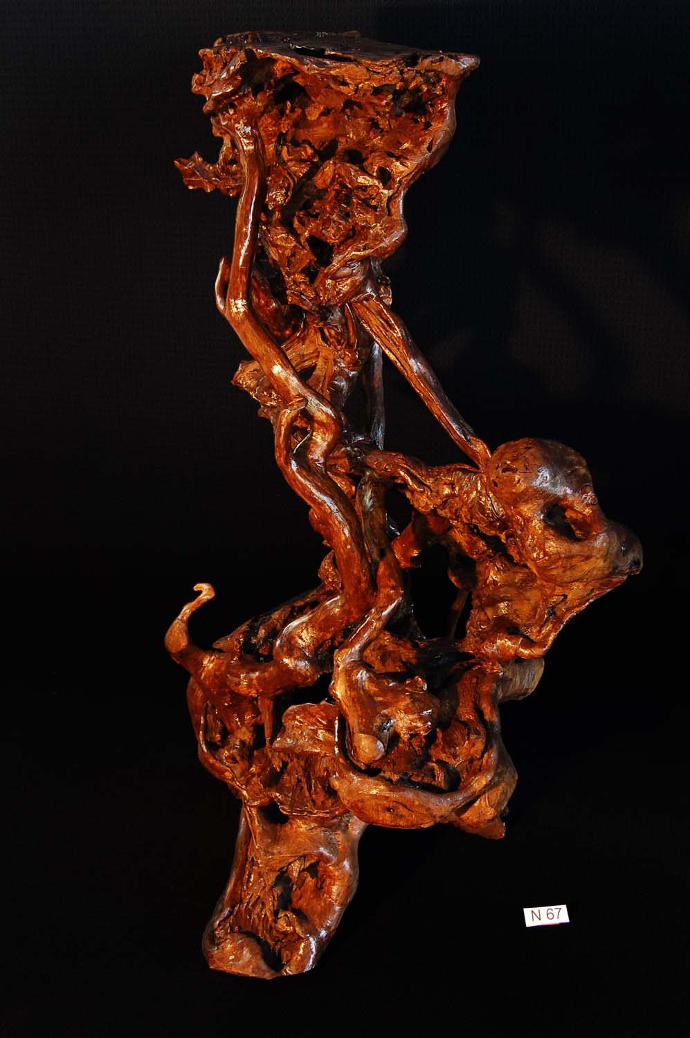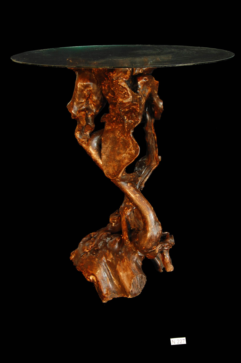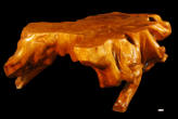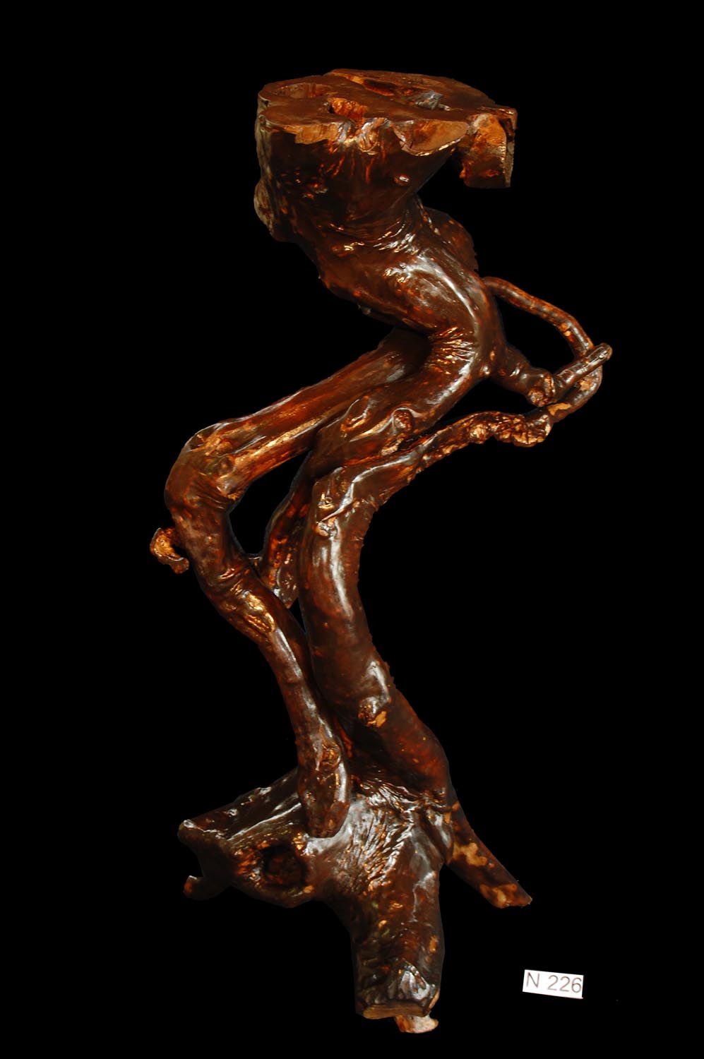 Description: Water fountain beautifully hand-carved from a single piece of drift wood (tree root) of intricate shape. An electric pump creates water flow from right to left, cascading down into a pool. Complete with fibre glass sabre toothed tiger drinking at the pool.