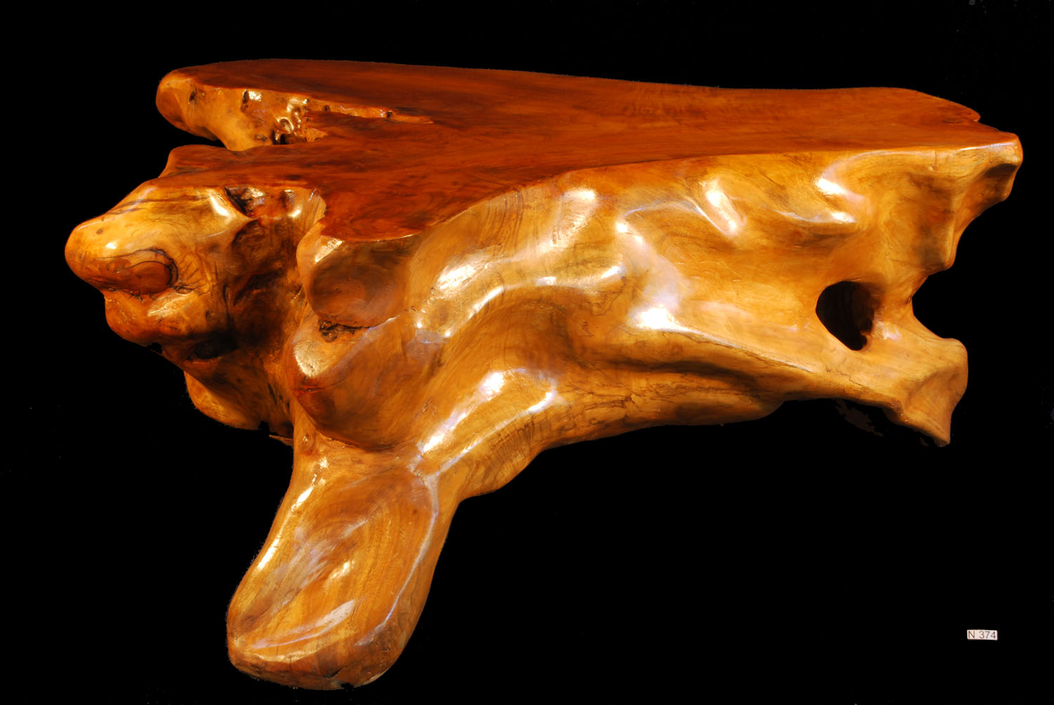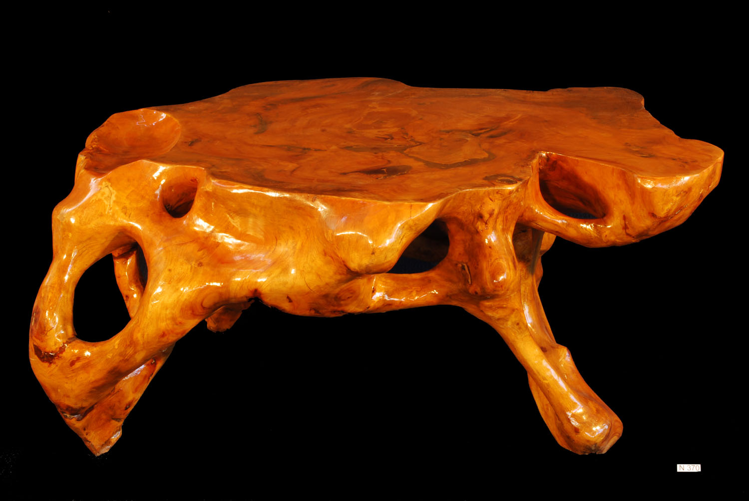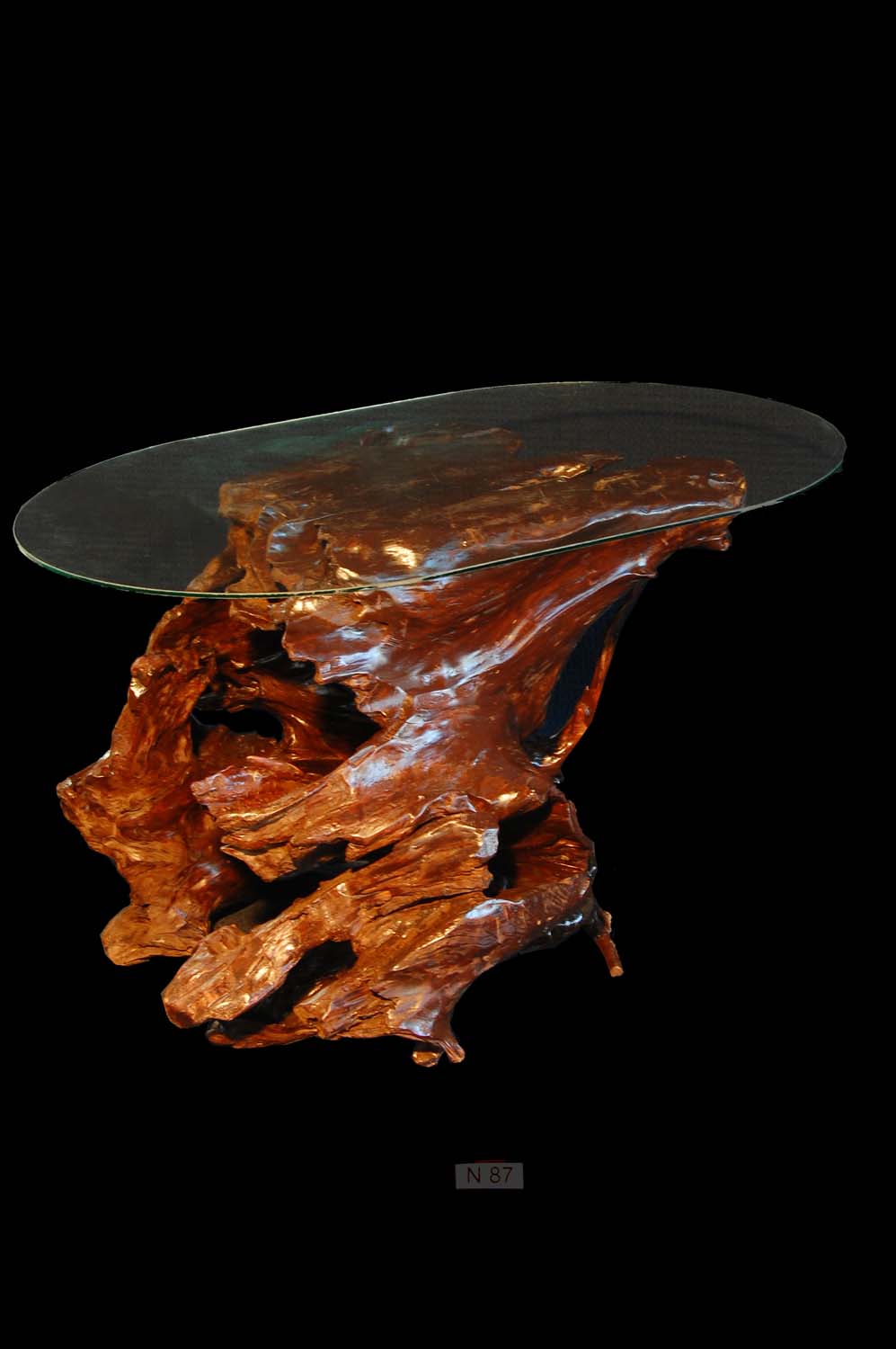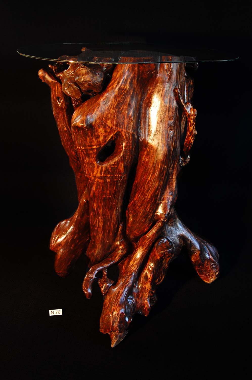 Description: Water fountain beautifully hand-carved from a single piece of drift wood (tree root) of intricate shape. An electric pump creates water flow from right to left, cascading down into a pool. Complete with fibre glass sabre toothed tiger drinking at the pool.