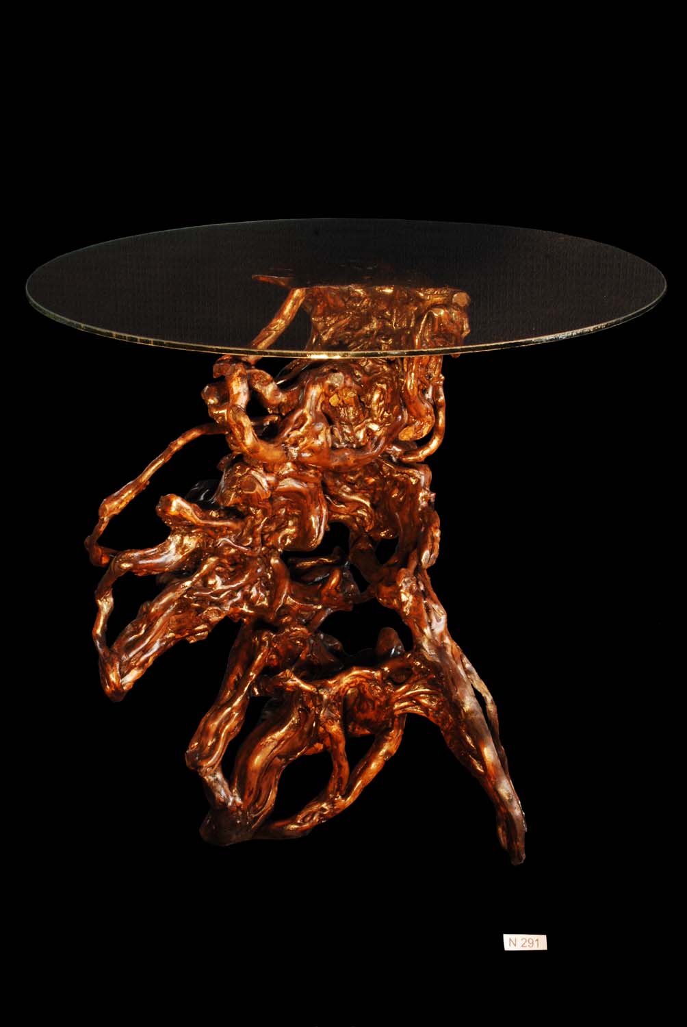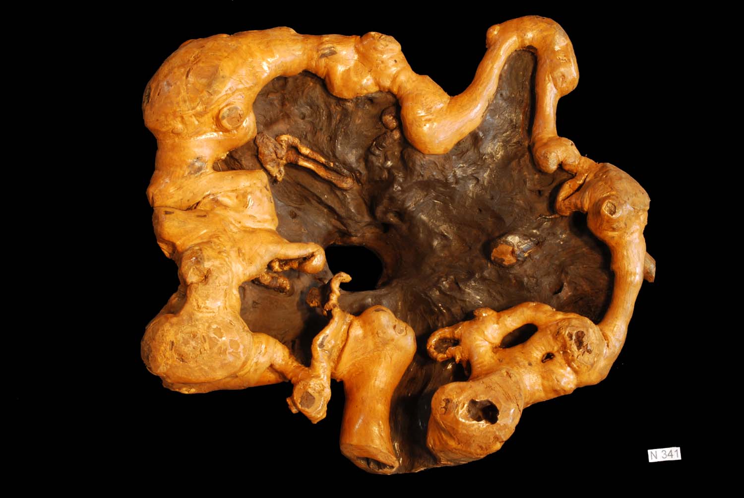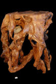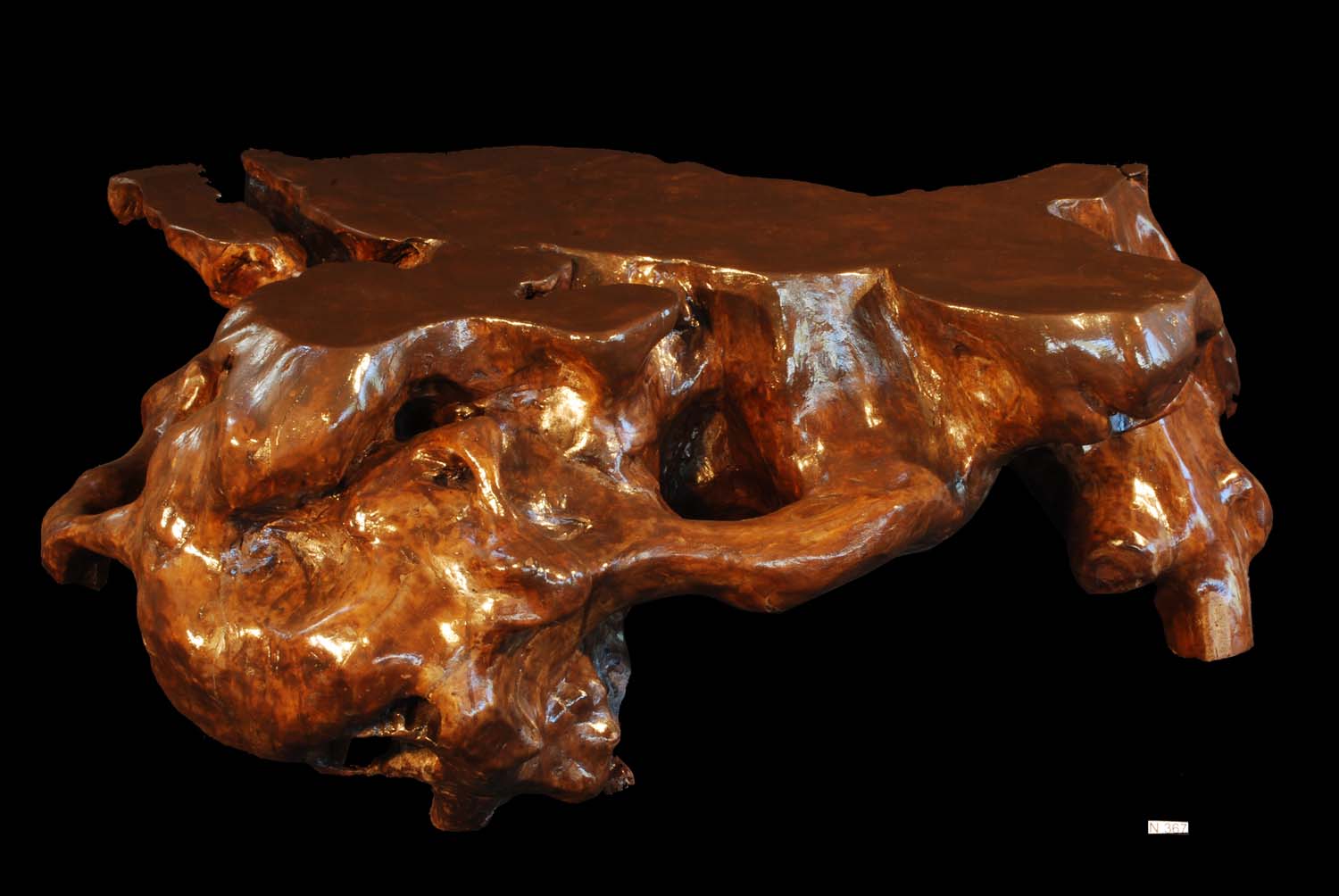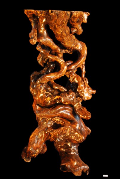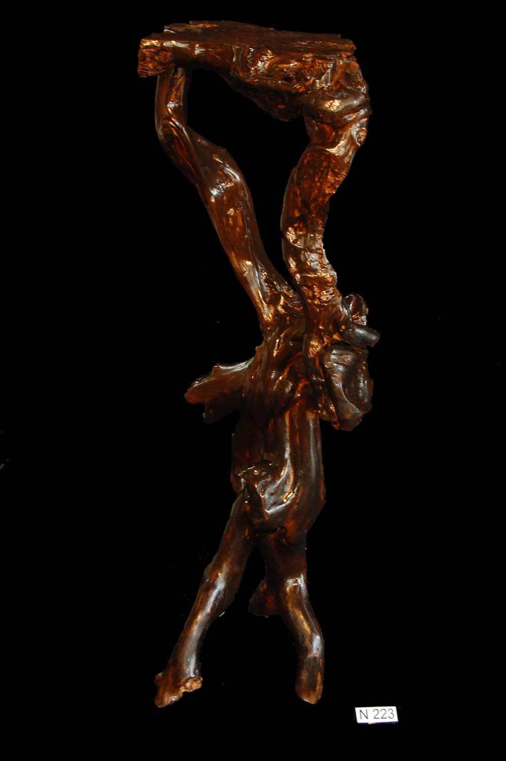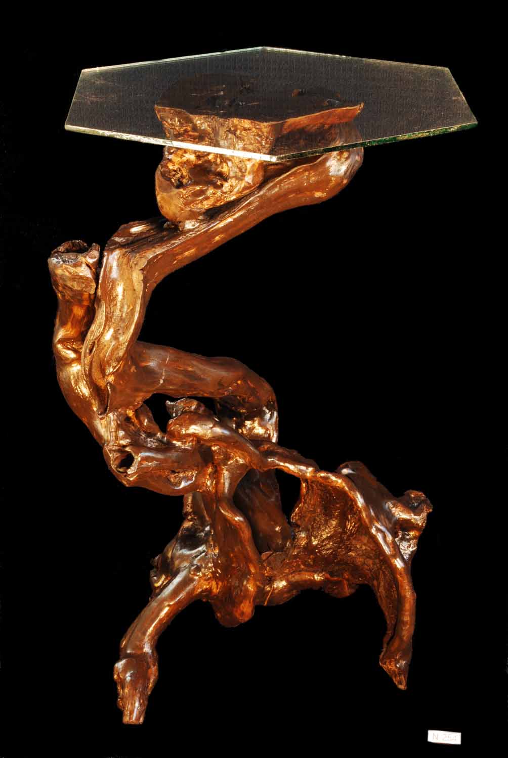 Description: Water fountain beautifully hand-carved from a single piece of drift wood (tree root) of intricate shape. An electric pump creates water flow from right to left, cascading down into a pool. Complete with fibre glass sabre toothed tiger drinking at the pool.