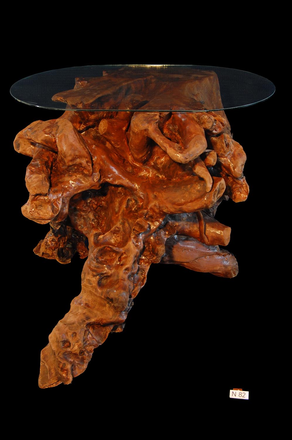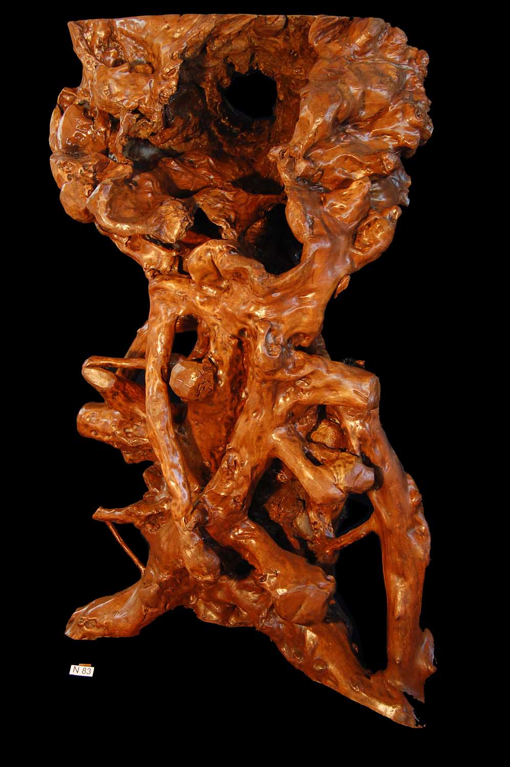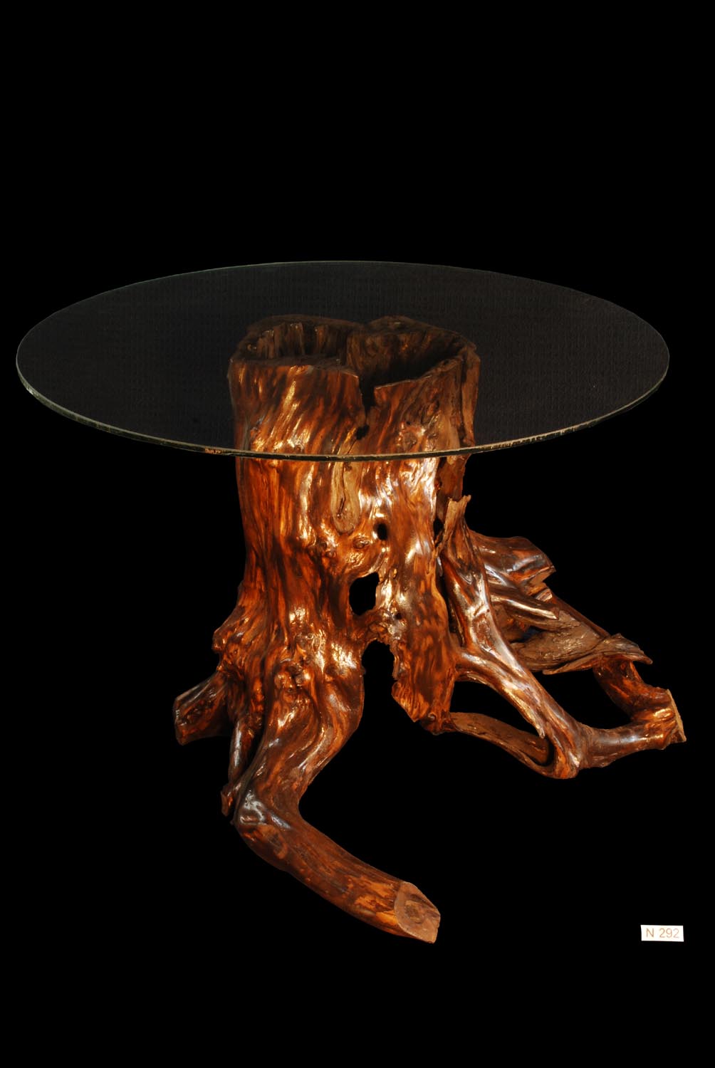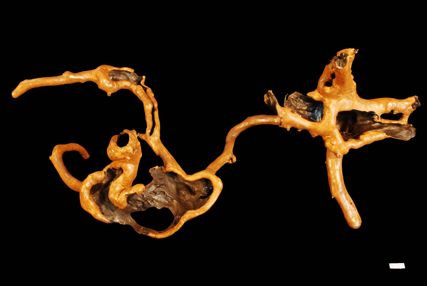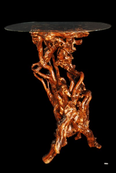 Description: Water fountain beautifully hand-carved from a single piece of drift wood (tree root) of intricate shape. An electric pump creates water flow from right to left, cascading down into a pool. Complete with fibre glass sabre toothed tiger drinking at the pool.
