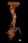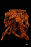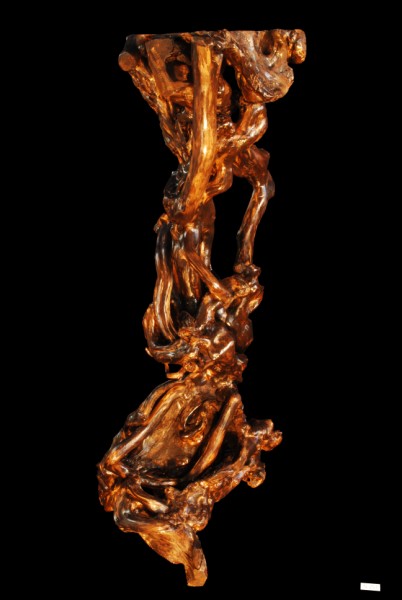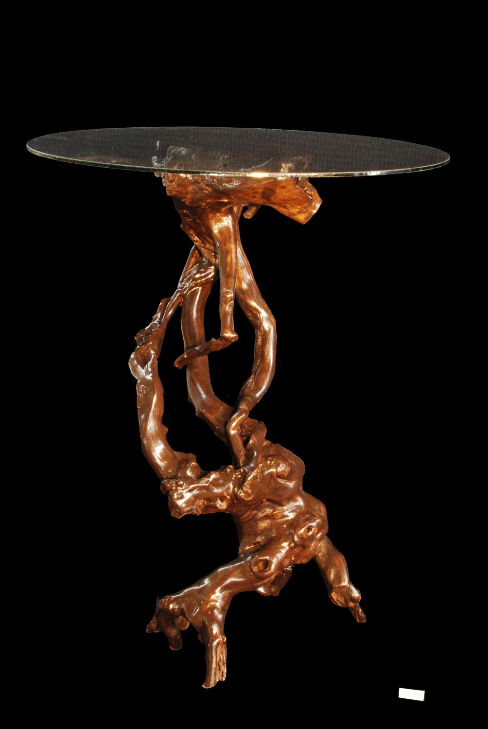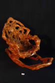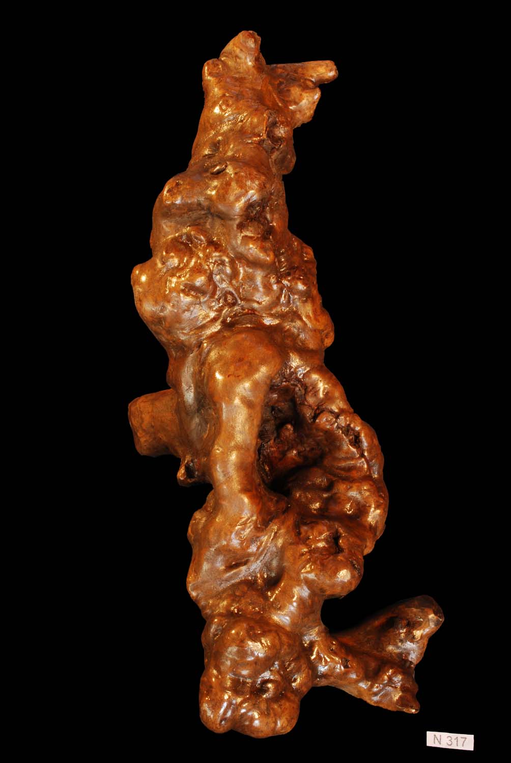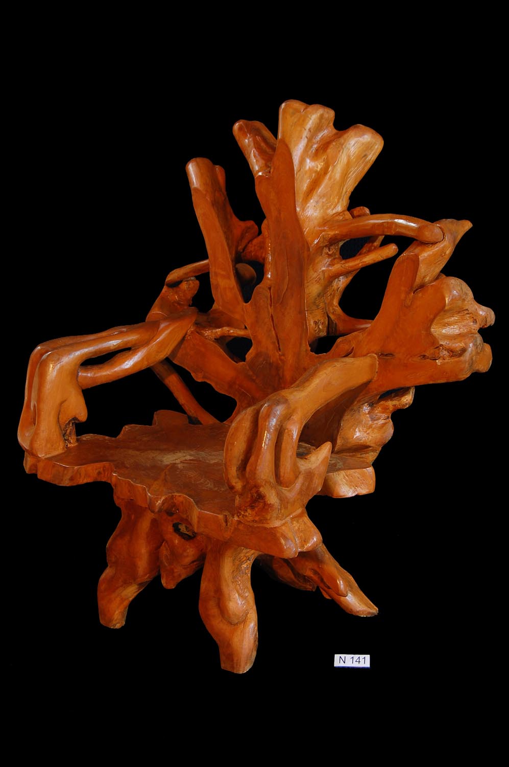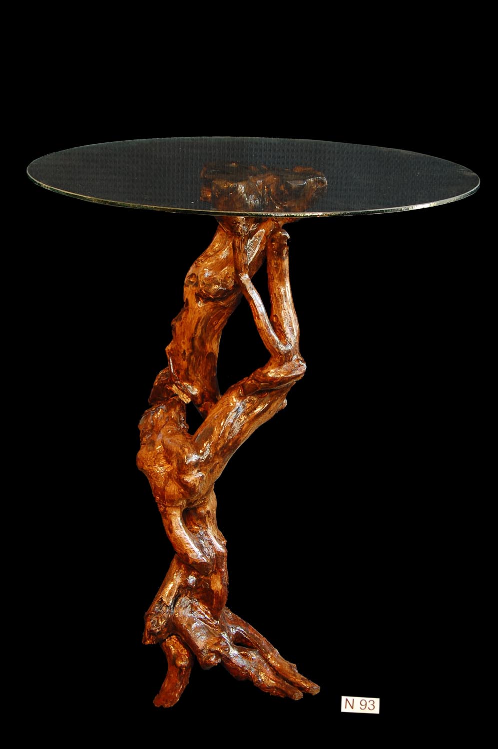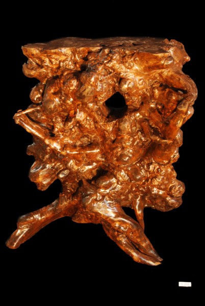 Description: Water fountain beautifully hand-carved from a single piece of drift wood (tree root) of intricate shape. An electric pump creates water flow from right to left, cascading down into a pool. Complete with fibre glass sabre toothed tiger drinking at the pool.