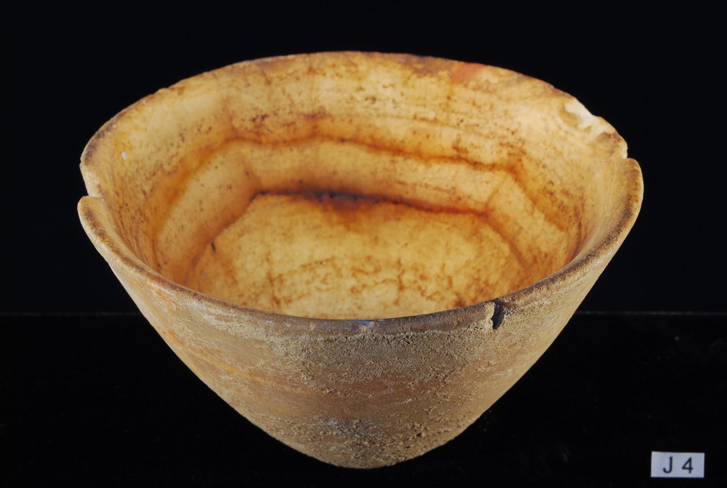 alabaster with a rounded lip and slightly concave body flaring out toward