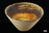 banded alabaster with a broad flat rim and body flaring out toward the base.