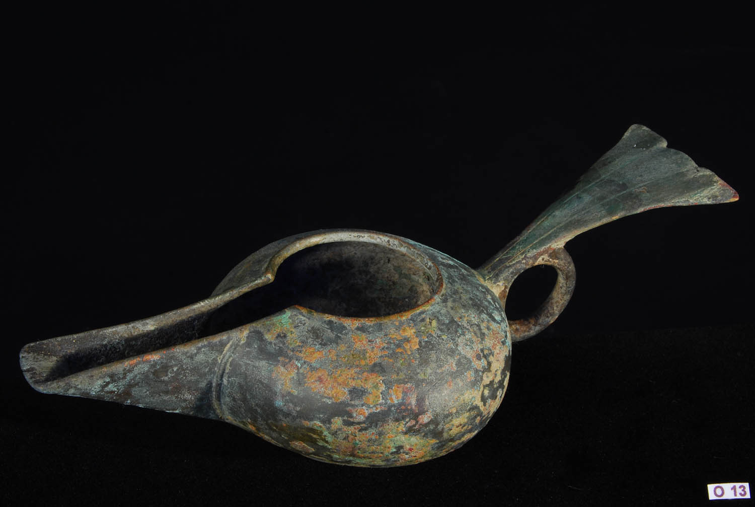 Century AD. Superb and rare form form of lamp of elevated form attached by