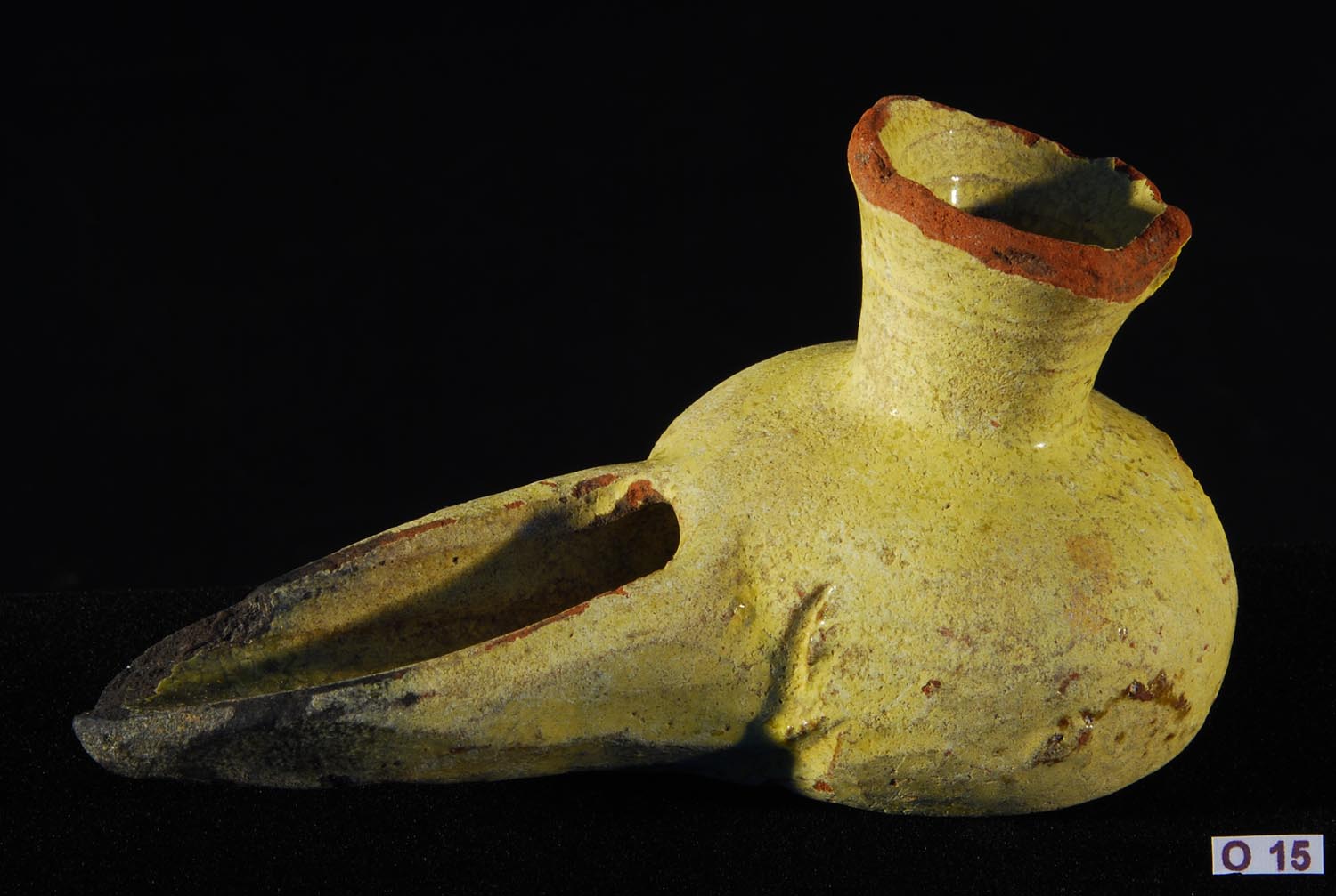 - 12th Century AD. Two tone slip painted and glazed lamp of small