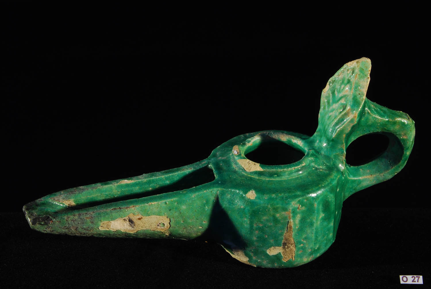 Description: Islamic Glazed Pottery Oil Lamp.