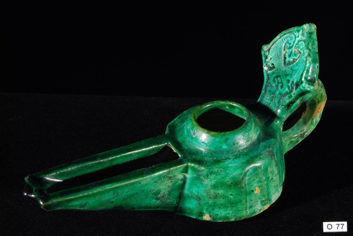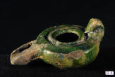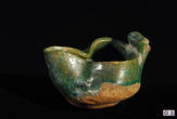 Description: Islamic Glazed Pottery Oil Lamp. 10th