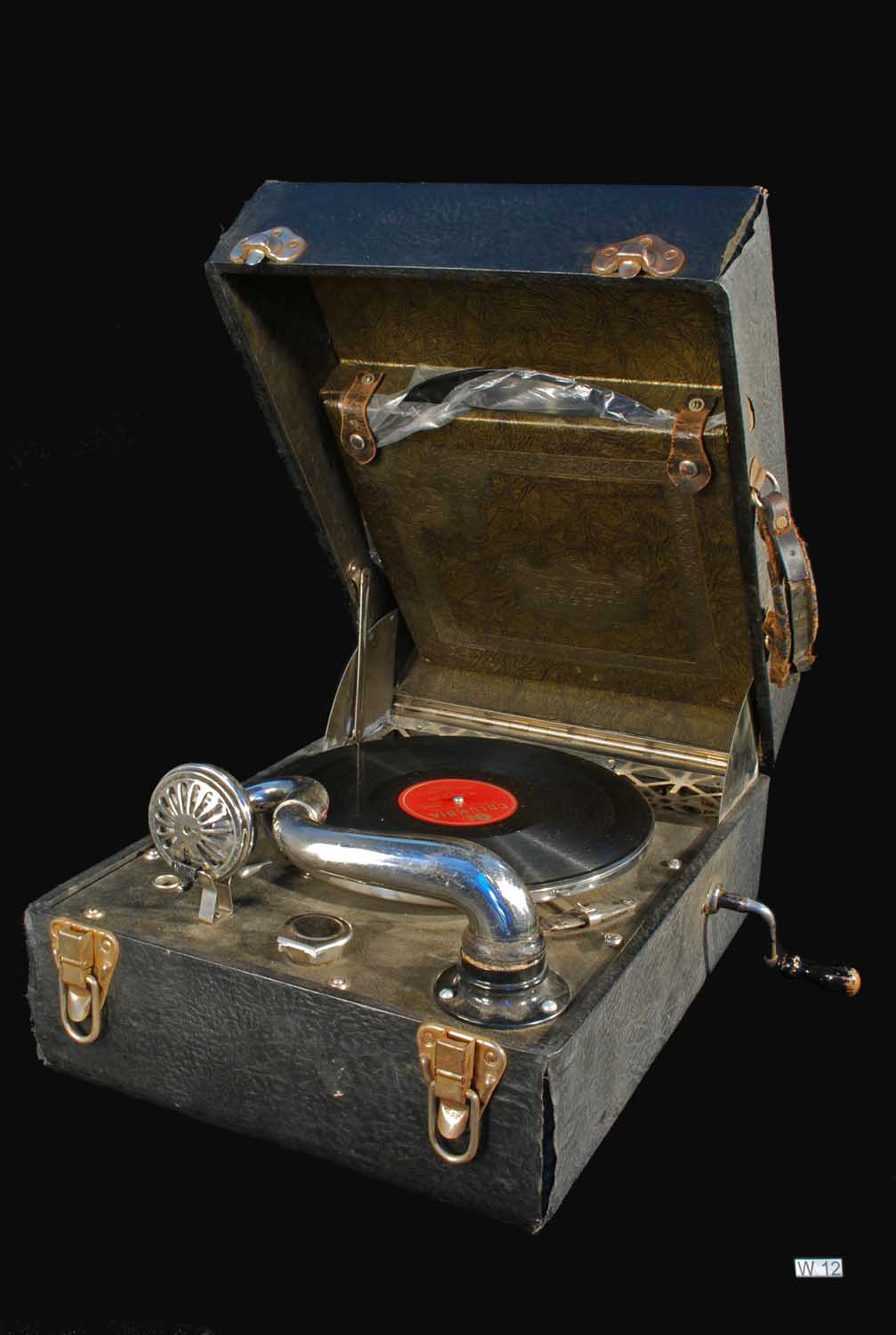 Description: Mechanically wound record player.