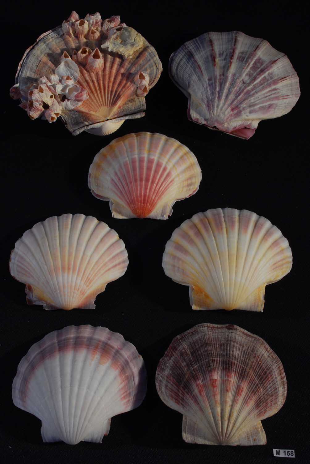 mollusks. Marine mollusk shells that are familiar to beachcombers and thus